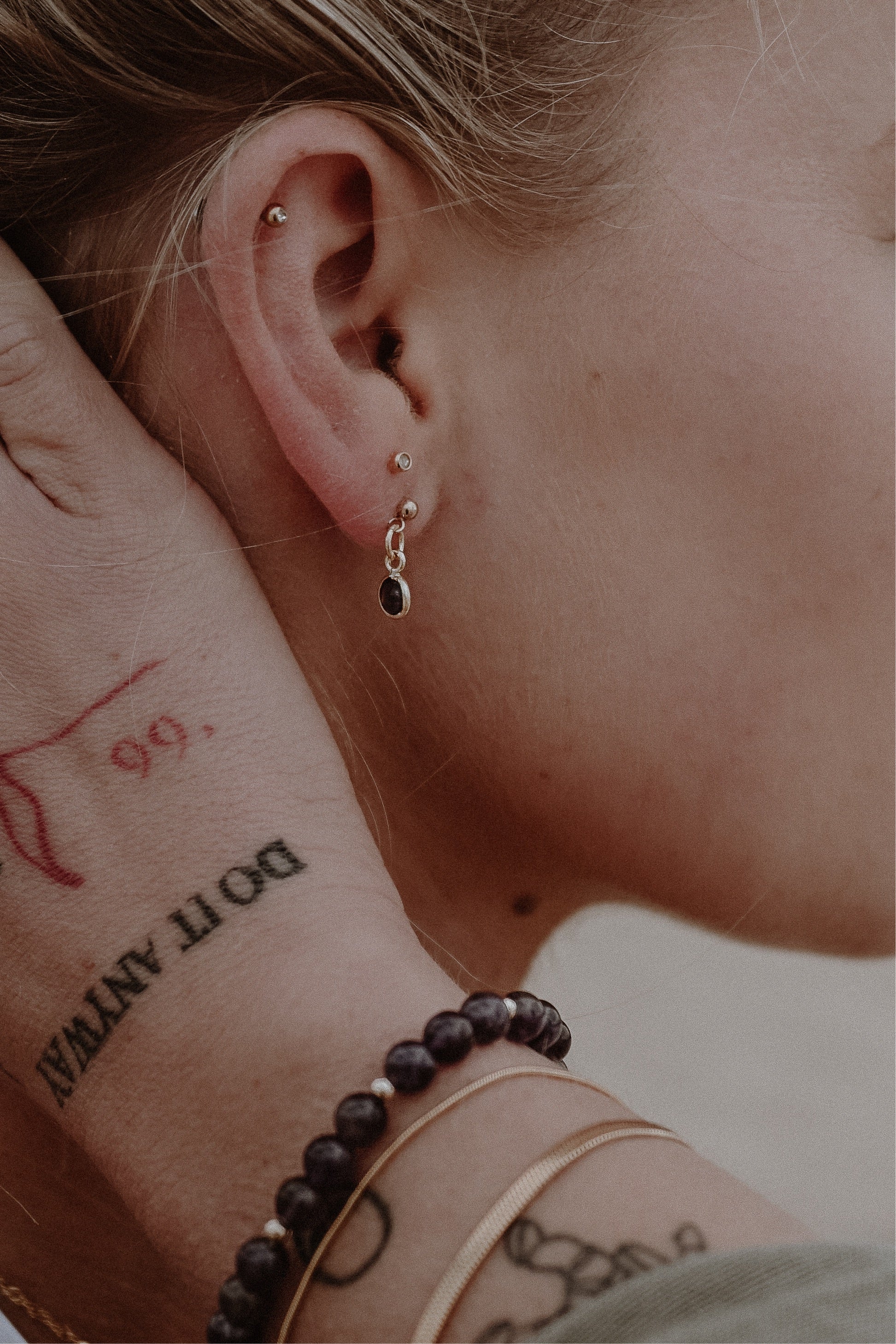 Gold filled drop studs with a gold vermeil gemstone charm.