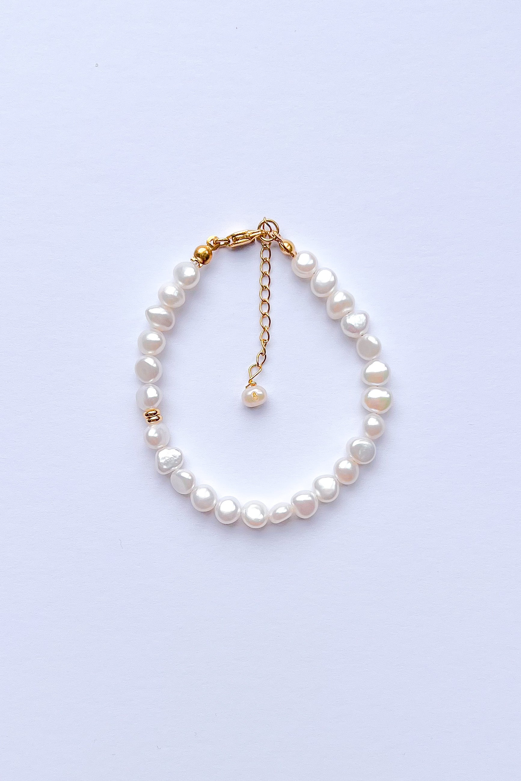 Chunky Freshwater Pearl bracelet with 18k gold plated stainless steel finish.