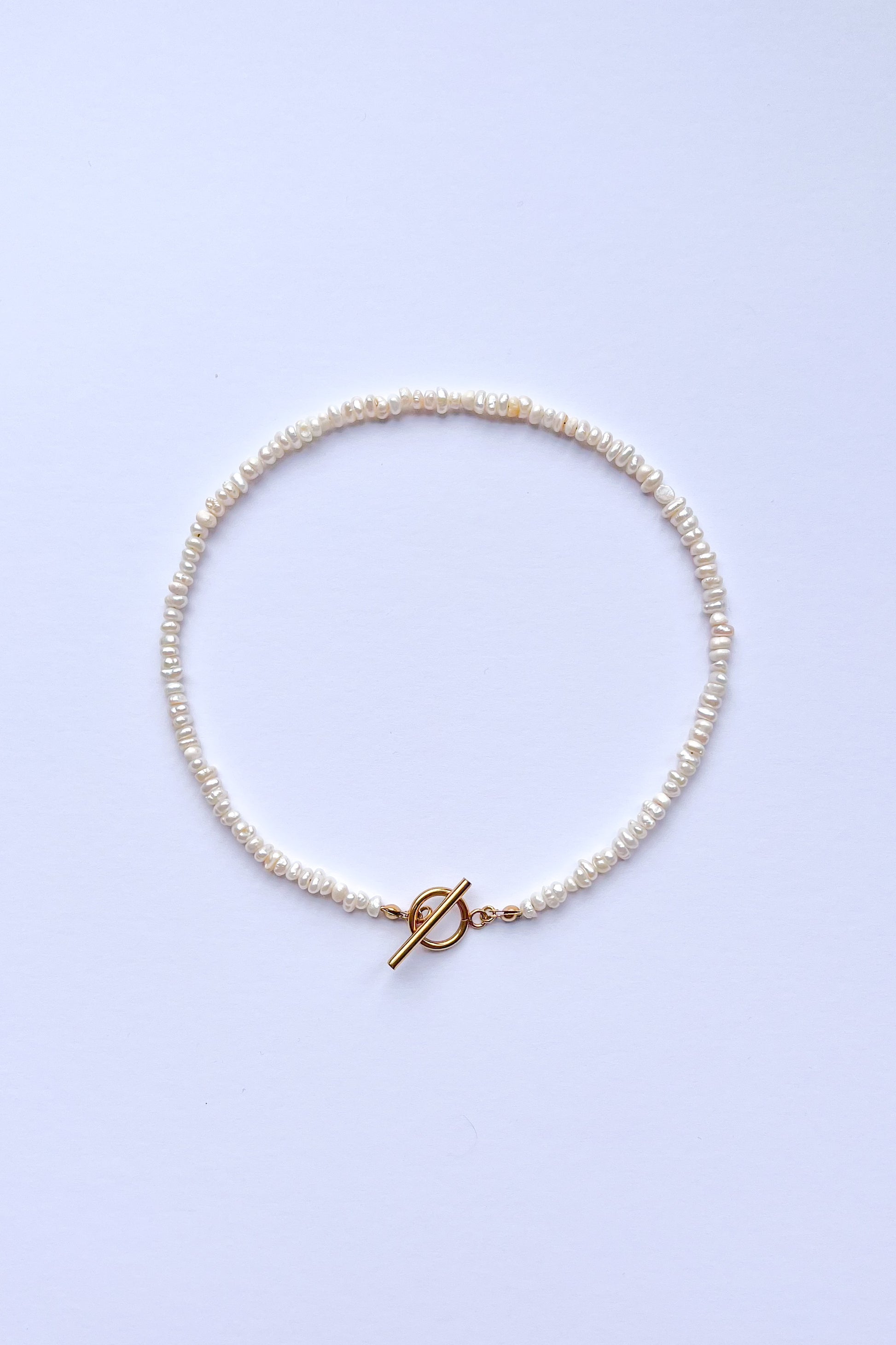 Toggle Clasp Freshwater Pearl choker with 18k gold plated stainless steel finish.